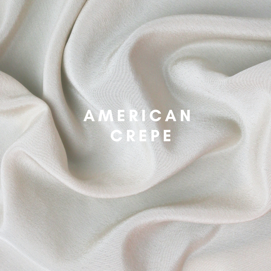 American Crepe is a type of crepe fabric, which is known for its lightweight, soft, and flowy texture. Crepe fabric is created by twisting and winding the yarns to create a characteristic crinkled texture, which gives it its distinctive draping and fluidity.