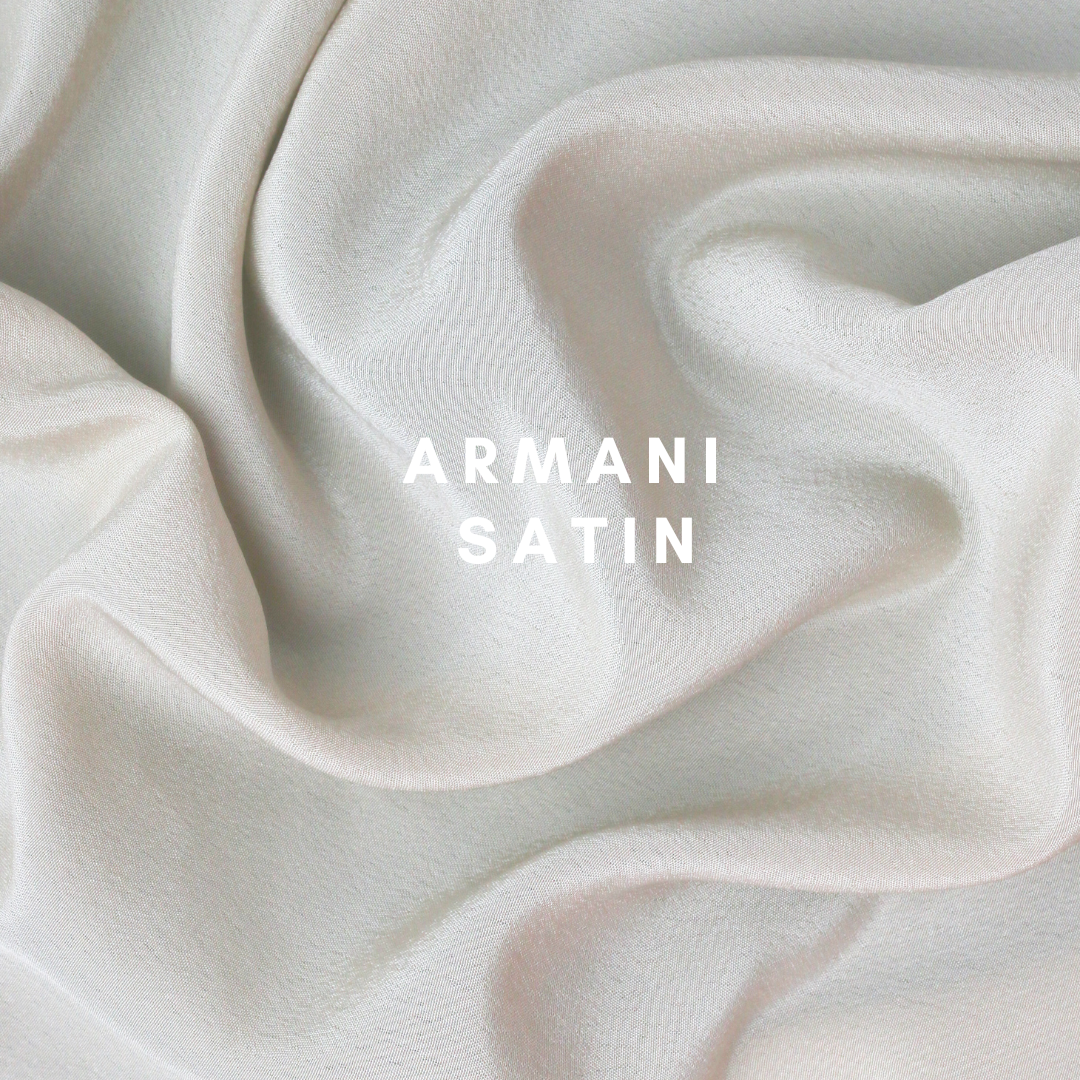 Armani Satin is a smooth and shiny fabric that is typically made from silk, though it may also be made from synthetic fibers like polyester. It is known for its luxurious feel, soft texture, and elegant appearance. The smooth and lustrous surface of Armani Satin makes it ideal for formal and elegant clothing items, such as dresses and tops.